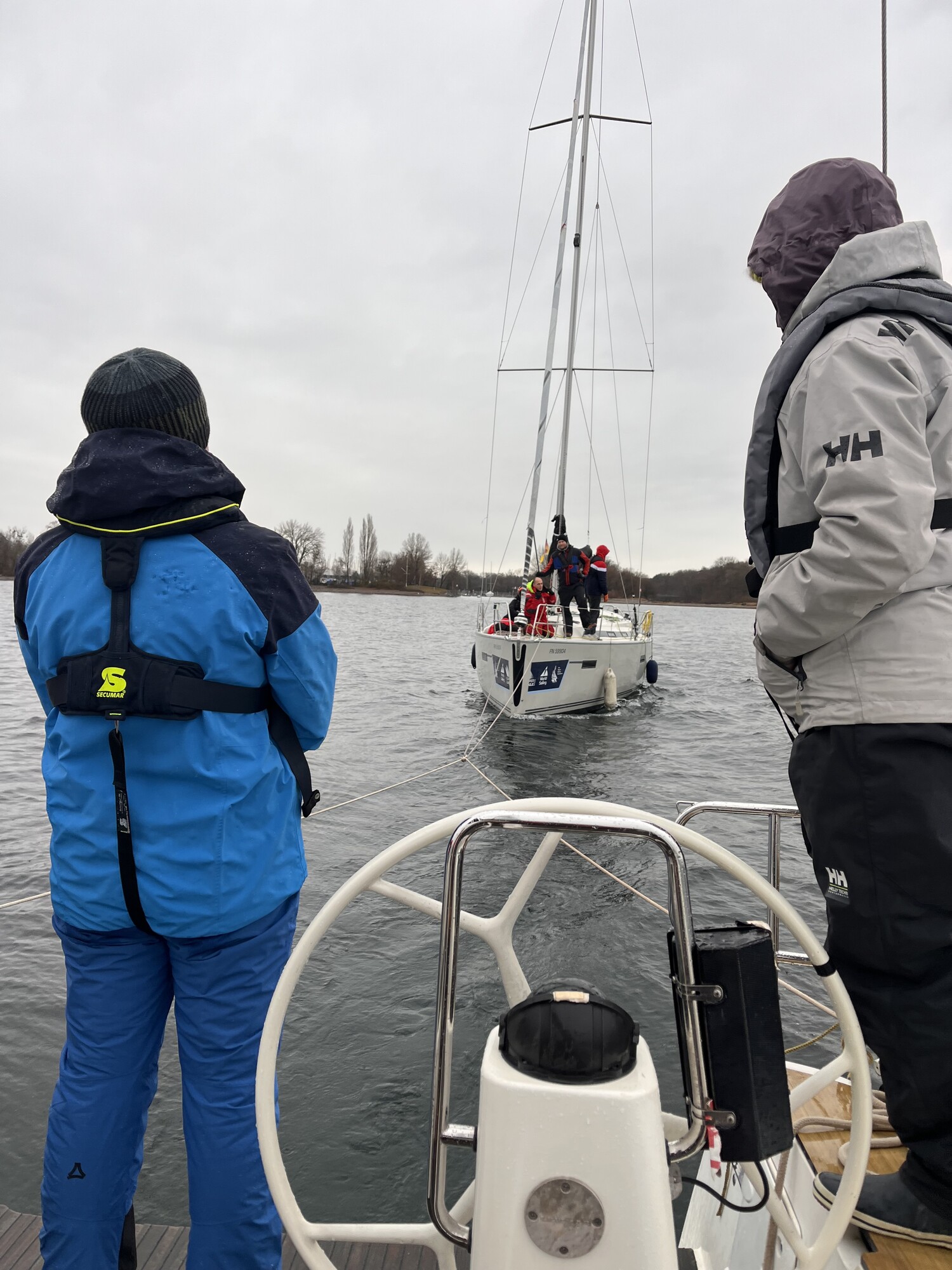 Den Sonntag nutzten ein paar Boote, um etwas speziellere Dinge zu trainieren. Wie lege ich unter Segel an? Wie lege ich mit Notpinne an? Wie schleppe ich ein anderes Boot oder wie lasse ich mich abschleppen? Aber auch bereits bekannte Rettungsmanöver wurden auf einem Boot wiederholt und vertieft. All das konnte unter hervorragender Anleitung und mit Unterstützung der Ausbilder ausgiebig geübt und ausprobiert werden.